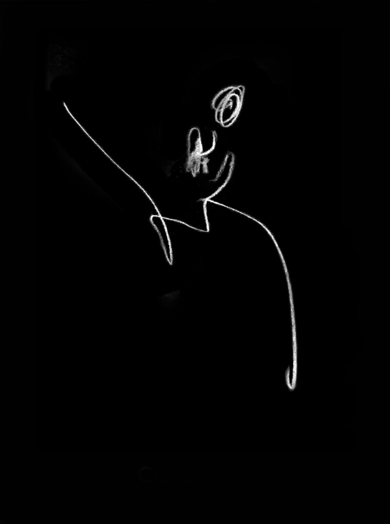 12 drawings , 3 animated drawings and a photographic image of a drawing made in the dark.
